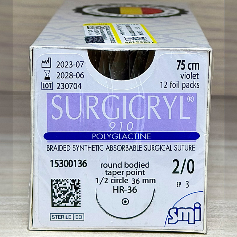 نخ بخیه ویکریل اس ام ای 2/0 راند سوزن 36mm از برند معتبر SMI (بلژیک) با نام تجاری SURGICRYL، معادل نخ ویکریل (Vicryl) شرکت Ethicon است و یکی از پرکاربردترین نخهای جذبشونده در جراحیهای دقیق و حساس محسوب میشود.
